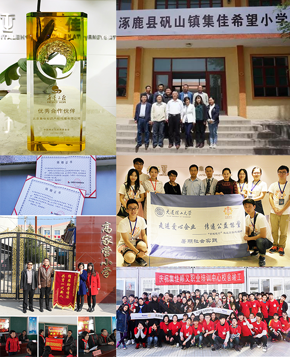 責任于心,擔當于行。作為一家有溫度的企業(yè),集佳在用心為企業(yè)提供知識產(chǎn)權保護策略的同時,也一直自覺承擔各項社會責任,熱心參與各項公益事業(yè),發(fā)揚行業(yè)擔當精神,堅持不懈用愛心回饋社會。尤其是在教育領域,集佳不僅重視專業(yè)人才培養(yǎng),通過愛心獎學金、集佳班、提供社會實踐等方式與中國政法大學、同濟大學、大連理工大學等眾多高校合作培養(yǎng)知識產(chǎn)權專業(yè)人才,更是特別關注青少年的教育和成長。目前,集佳已援建13所希望小學,并多次進行回訪,持續(xù)關注孩子們的學習和成長,了解學校和孩子們的真實所需,提供最有效的幫助。同時,集佳設立了多項助學基金,對多所小學、中學、技術學校等提供幫扶。集佳期望,通過一點一滴的幫助,讓孩子們的生活和學習更加豐富多彩,讓他們感受著愛的力量,懷抱希望,用優(yōu)異的學業(yè)報效祖國,用同樣的關愛回報社會。