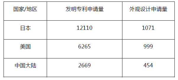 2020年向中國(guó)臺(tái)灣地區(qū)申請(qǐng)的前三大國(guó)家和地區(qū)申請(qǐng)量,見(jiàn)下表: