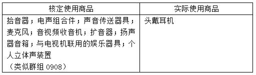 由《類似商品和服務(wù)區(qū)分表》可知,“頭戴耳機(jī)”為類似群組0908的規(guī)范商品名稱,而系爭(zhēng)商標(biāo)的核定使用商品也均屬于類似群組0908。很顯然,實(shí)際使用商品和核定使用商品完全屬于相同的類似群組,構(gòu)成類似商品。