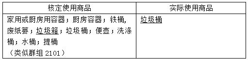 由上表可知,系爭(zhēng)商標(biāo)僅使用在一個(gè)商品,即“垃圾桶”上。并且,“垃圾桶”就是其核定使用商品之一,顯然在該商品上的商標(biāo)使用應(yīng)該被認(rèn)可。