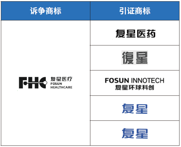 ”雖然和各引證商標(biāo)均包含“復(fù)星”,但訴爭商標(biāo)中包含多種構(gòu)成要素,中文部分整體為“復(fù)星醫(yī)療”,再加上其英文部分“FOSUN HEALTHCARE+FHG”,從而在商標(biāo)的整體外觀、呼叫以及含義上均和各引證商標(biāo)產(chǎn)生了一定的差異,降低了混淆的可能性。