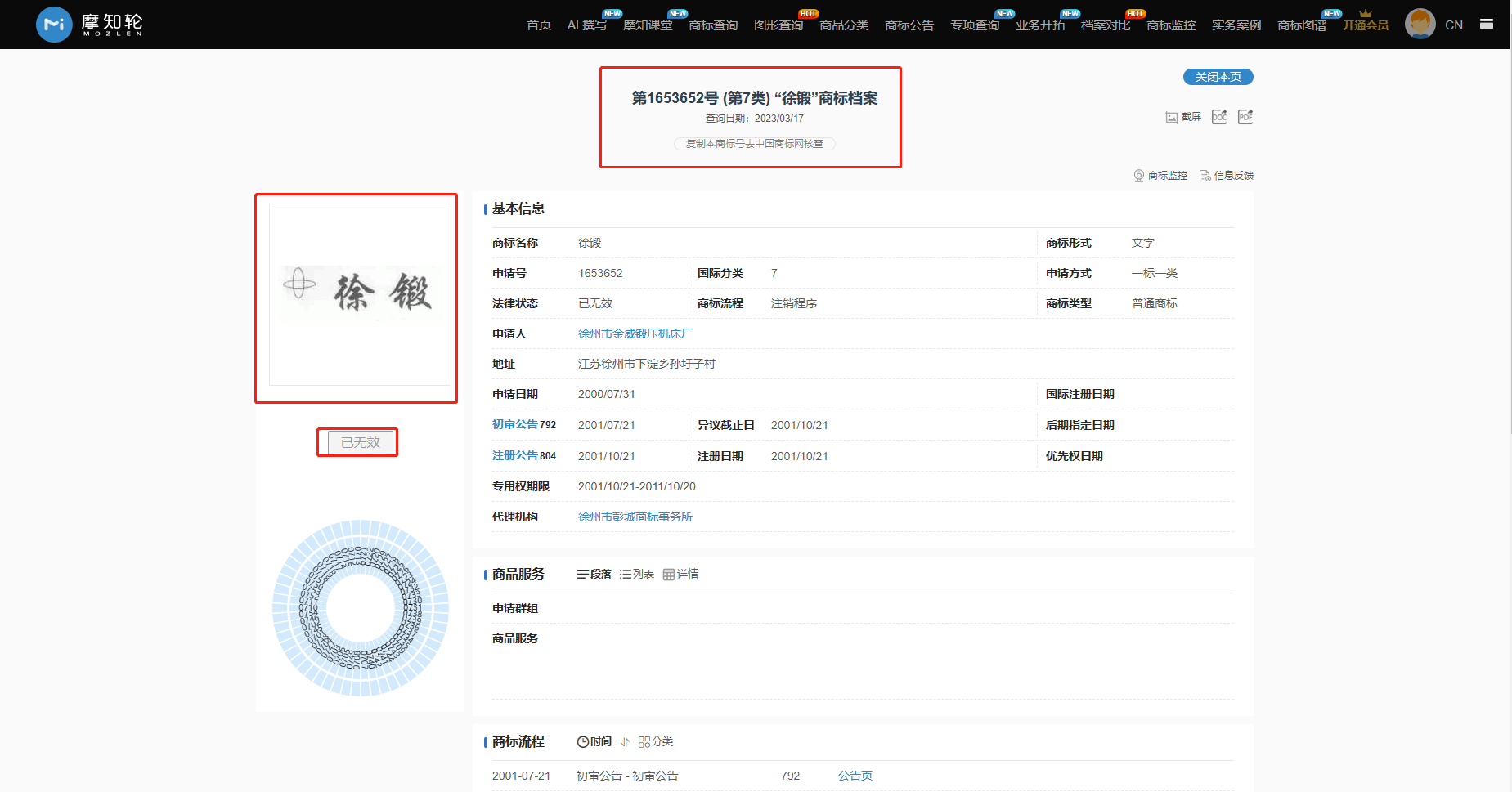 商標(biāo)局認(rèn)為:被異議商標(biāo)“徐鍛及圖”指定使用商品為第7類的“壓力機(jī)”。