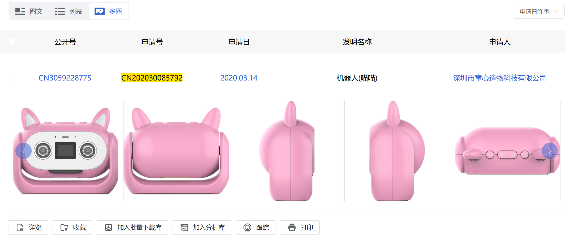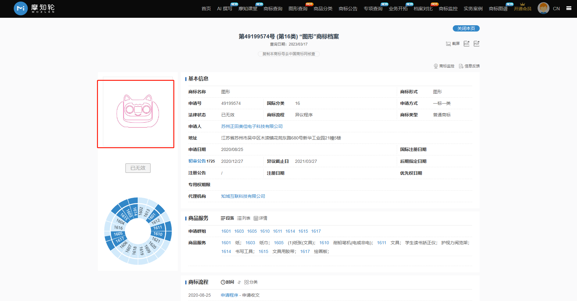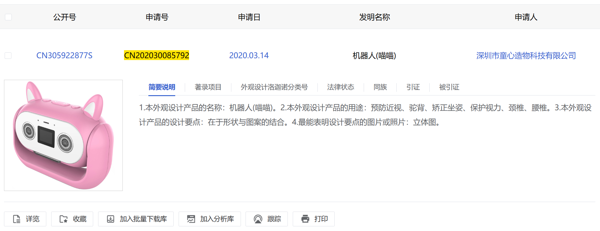 商標(biāo)局認(rèn)為:被異議商標(biāo)指定使用在第16類“紙;削鉛筆機(jī)(電或非電)”等商品上。異議人稱被異議人申請注冊被異議商標(biāo)侵犯其外觀設(shè)計(jì)專利權(quán),異議人提供的國家知識產(chǎn)權(quán)局出具的專利設(shè)計(jì)專利權(quán)評價(jià)報(bào)告顯示,異議人“機(jī)器人(喵喵)”專利號ZL202030085792.3,申請日為2020年3月14日,授權(quán)公告日為2020年7月14日,上述日期均早于被異議商標(biāo)申請日。被異議商標(biāo)“圖形”與異議人“機(jī)器人(喵喵)”外觀設(shè)計(jì)專利中顯示的主視圖主要構(gòu)圖要素,圖形整體視覺效果相近,已構(gòu)成近似,綜上所述,被異議人申請注冊被異議商標(biāo)侵犯其外觀設(shè)計(jì)專利權(quán),被異議商標(biāo)的申請注冊應(yīng)不予核準(zhǔn)。