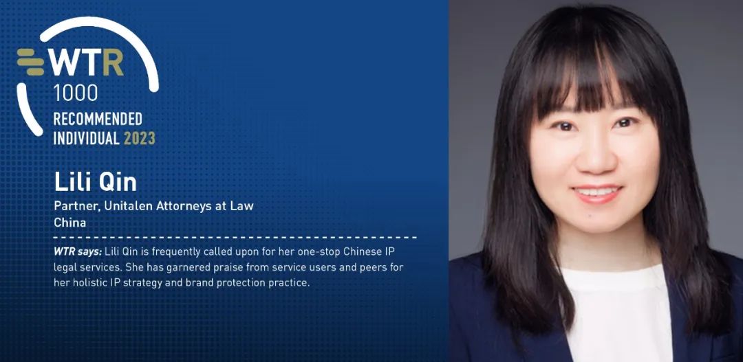 WTR評(píng)價(jià):“WTR1000的新秀秦麗麗律師曾為VISA、超微和星展銀行等提供一站式中國(guó)知識(shí)產(chǎn)權(quán)法律服務(wù),并以全面的知識(shí)產(chǎn)權(quán)戰(zhàn)略和品牌保護(hù)實(shí)踐贏得了客戶和同行的贊譽(yù)?!?/em>