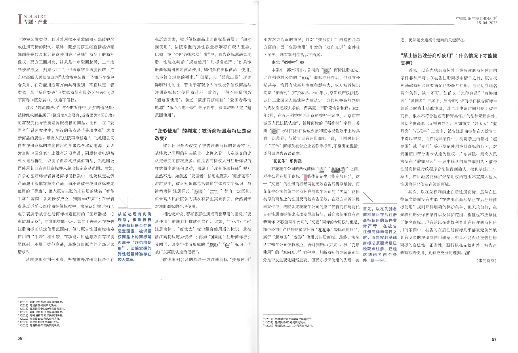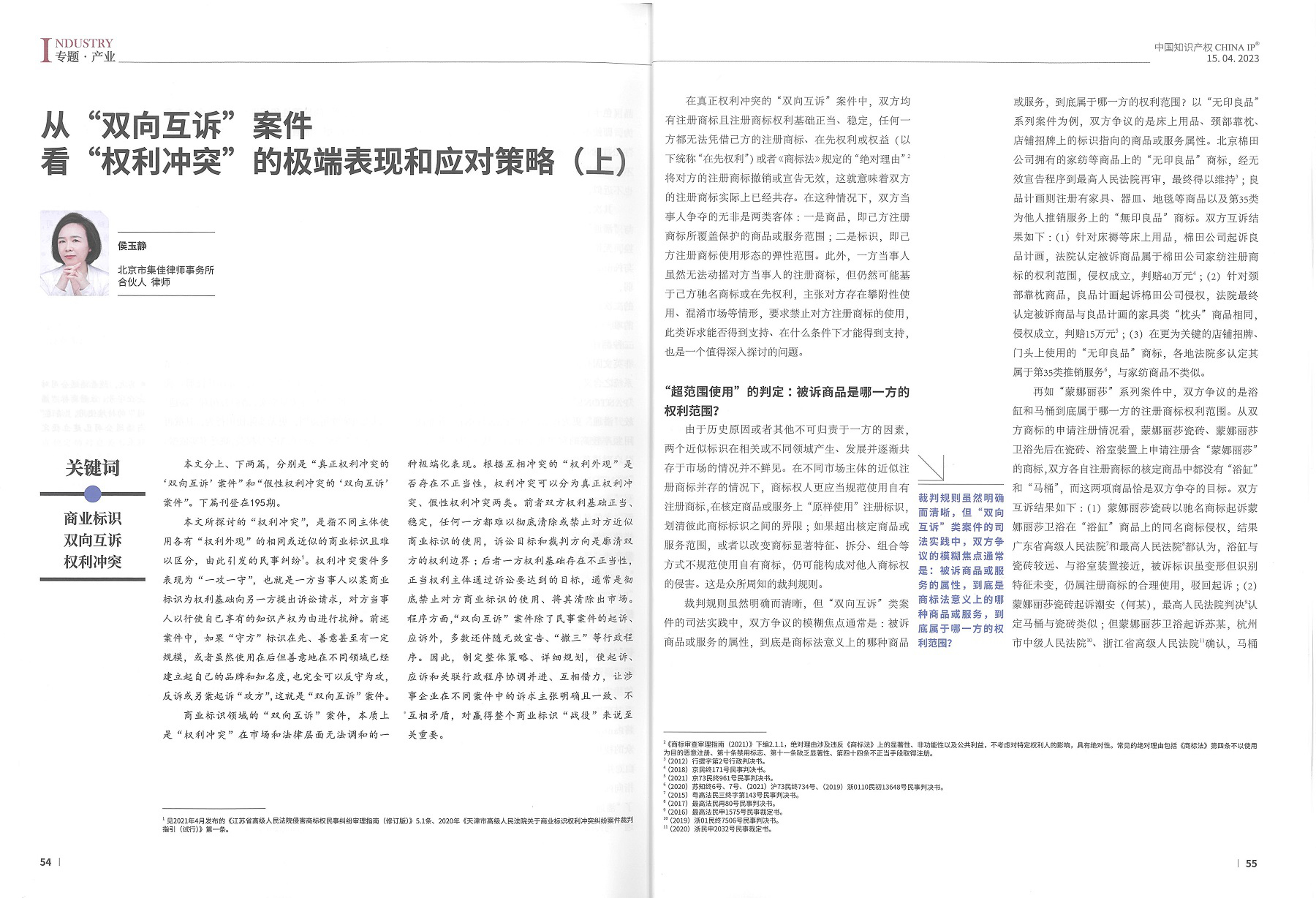 集佳文章《從“雙向互訴”案件看“權(quán)利沖突”的極端表現(xiàn)和應(yīng)對(duì)策略(上)》在《中國知識(shí)產(chǎn)權(quán)》發(fā)表
