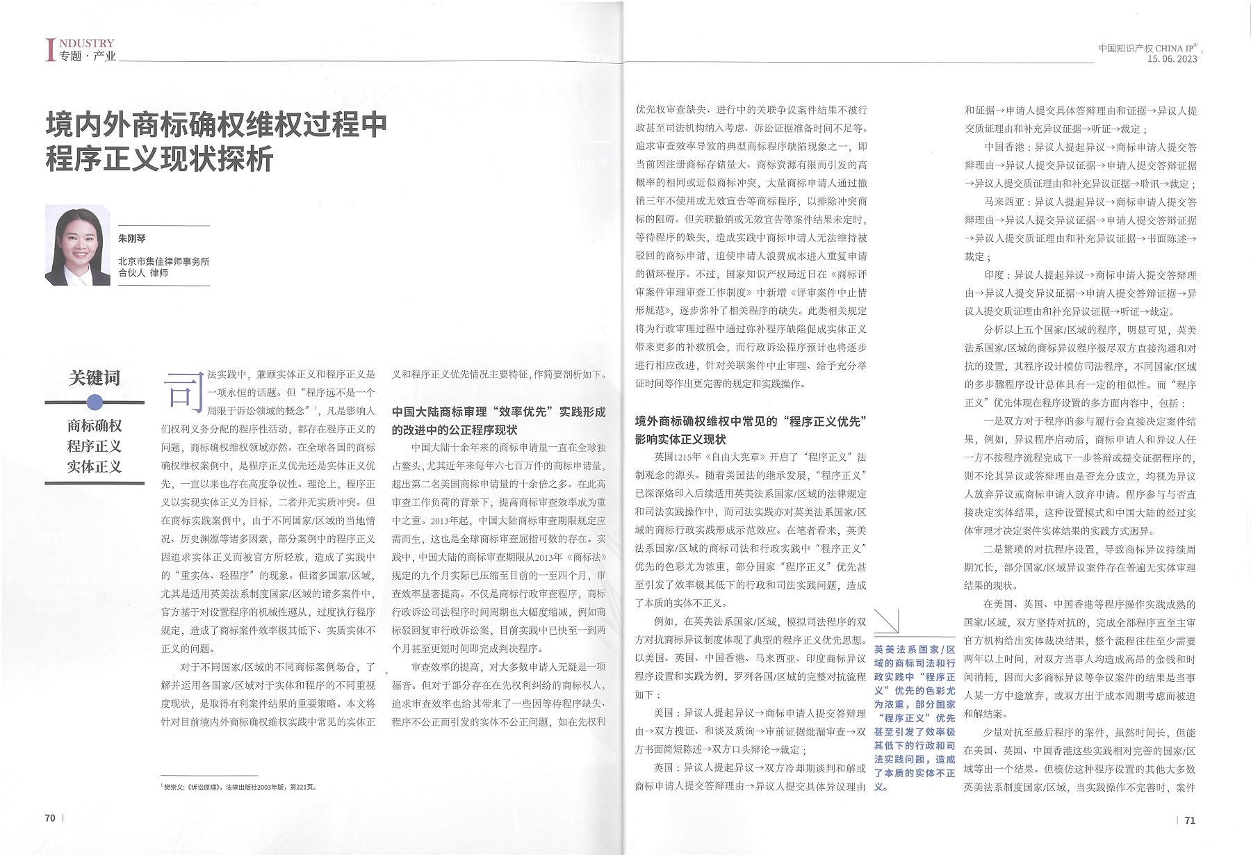 集佳文章《境內(nèi)外商標(biāo)確權(quán)維權(quán)過程中程序正義現(xiàn)狀探析》在《中國知識產(chǎn)權(quán)》發(fā)表