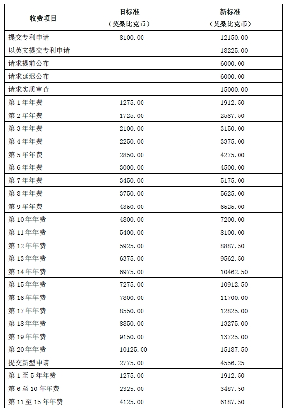 基于第154/2023號(hào)部長(zhǎng)令,莫桑比克工業(yè)產(chǎn)權(quán)局近期宣布,于2024年2月26日更新知識(shí)產(chǎn)權(quán)相關(guān)業(yè)務(wù)的服務(wù)官費(fèi),涵蓋商標(biāo)和專利各項(xiàng)程序,上漲幅度高達(dá)50%。其中,除了專利申請(qǐng)及年費(fèi)等常規(guī)收費(fèi)項(xiàng)目官費(fèi)上漲以外,還新增了以英文提交專利申請(qǐng)等項(xiàng)目的收費(fèi)。