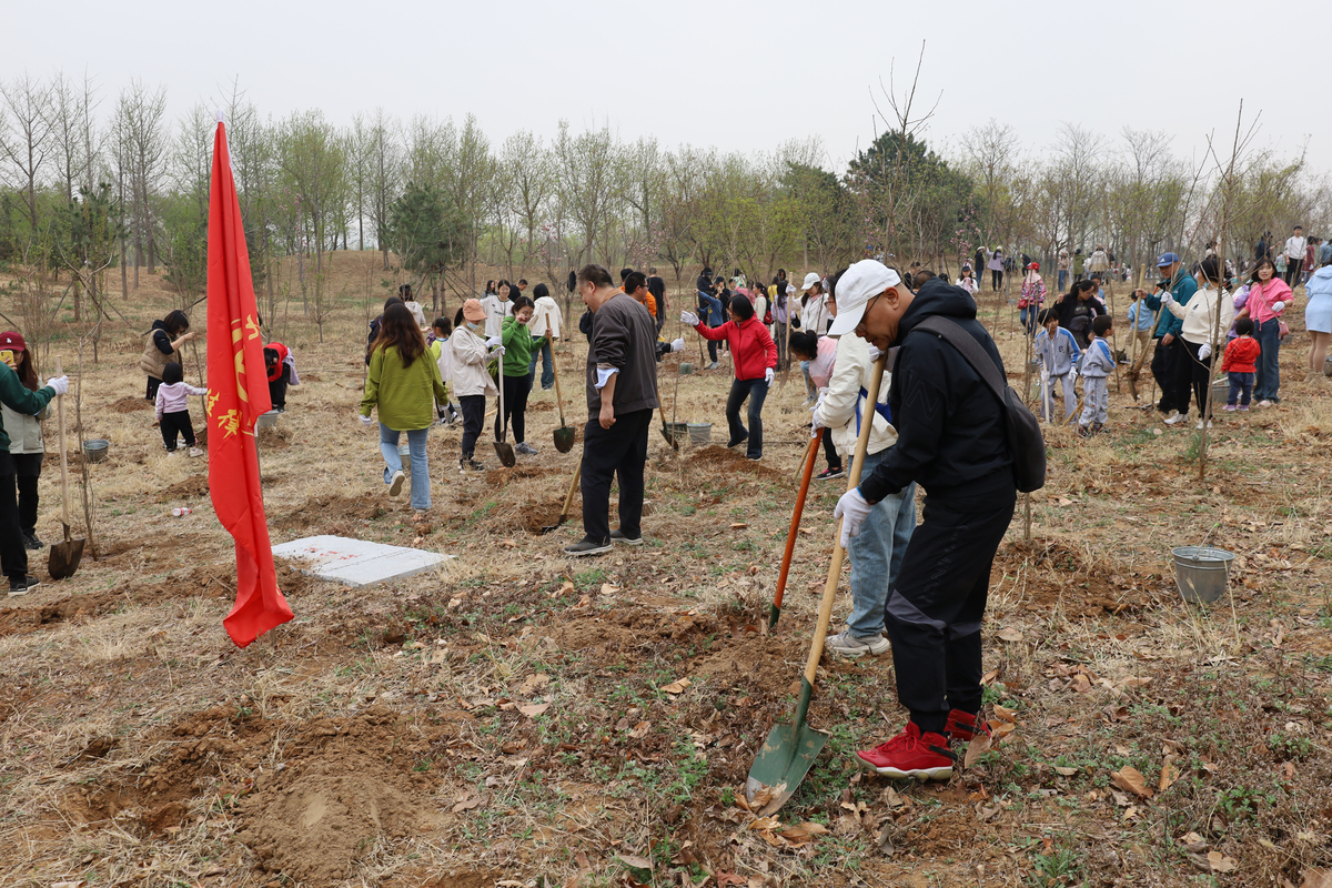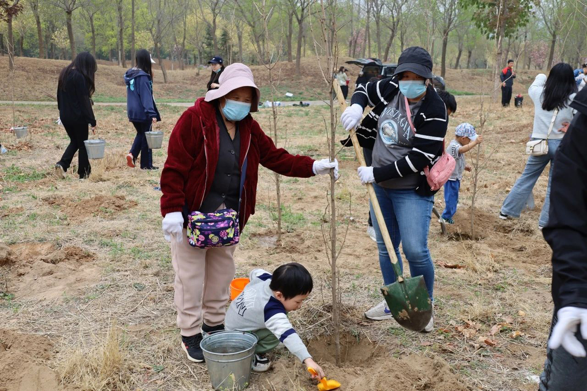 植樹現(xiàn)場,大家熱情高漲、干勁十足,