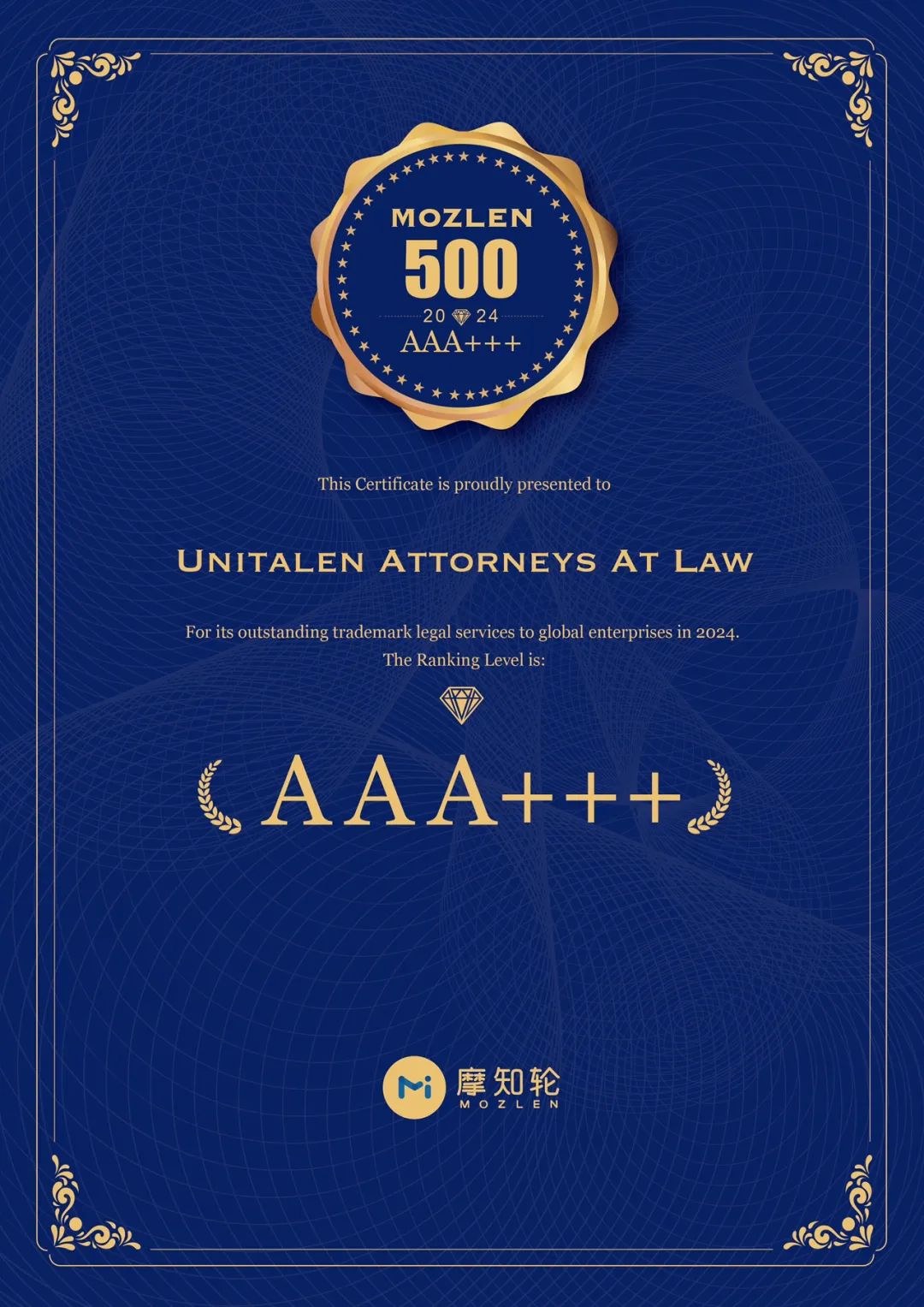 在本次年會上,業(yè)內領先的商標AI檢索分析及管理平臺摩知輪也重磅發(fā)布2024《MOZLEN 500》中國涉外商標代理機構全球榜單,集佳憑借杰出的國際客戶商標代理經驗、業(yè)務綜合實力和國際影響力在中國500家涉外商標代理機構綜合排名中位列“TOP10”,被評為“鉆石AAA +++”級(最高級別),并在諸多重點國家業(yè)務排名中表現突出,獲得重點推薦。