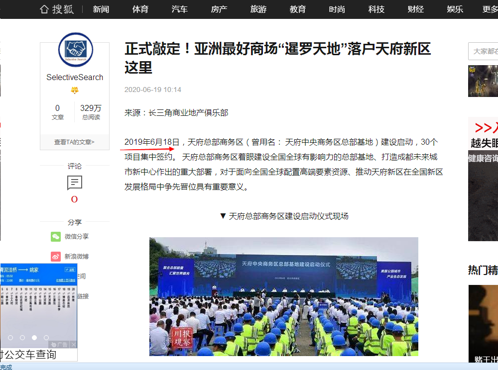 (國內(nèi)多家媒體報(bào)道2019年6月18日,“天府中央商務(wù)區(qū)總部基地項(xiàng)目集中簽約儀式和天府中央商務(wù)區(qū)總部基地建設(shè)啟動(dòng)儀式舉行”)