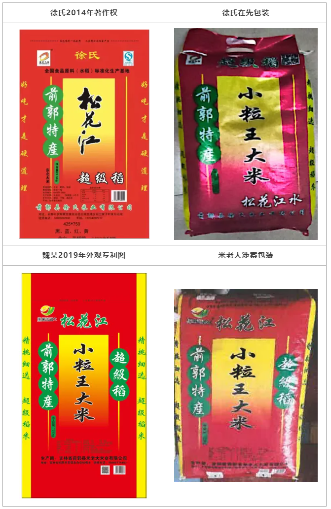 對該爭議焦點,集佳律師主要從原告徐氏公司的小粒王大米在蒙自地區(qū)的銷售時間、銷售規(guī)模方面論證其具備一定的知名度,而且,該地位于邊陲,群眾普遍對東北大米的識別能力不足,往往以大米包裝裝潢作為購買的參照物。米老大米業(yè)的包裝袋與徐氏米業(yè)的包裝袋外觀上非常近似,足以混淆,因此,應當認定其構(gòu)成不正當競爭行為。