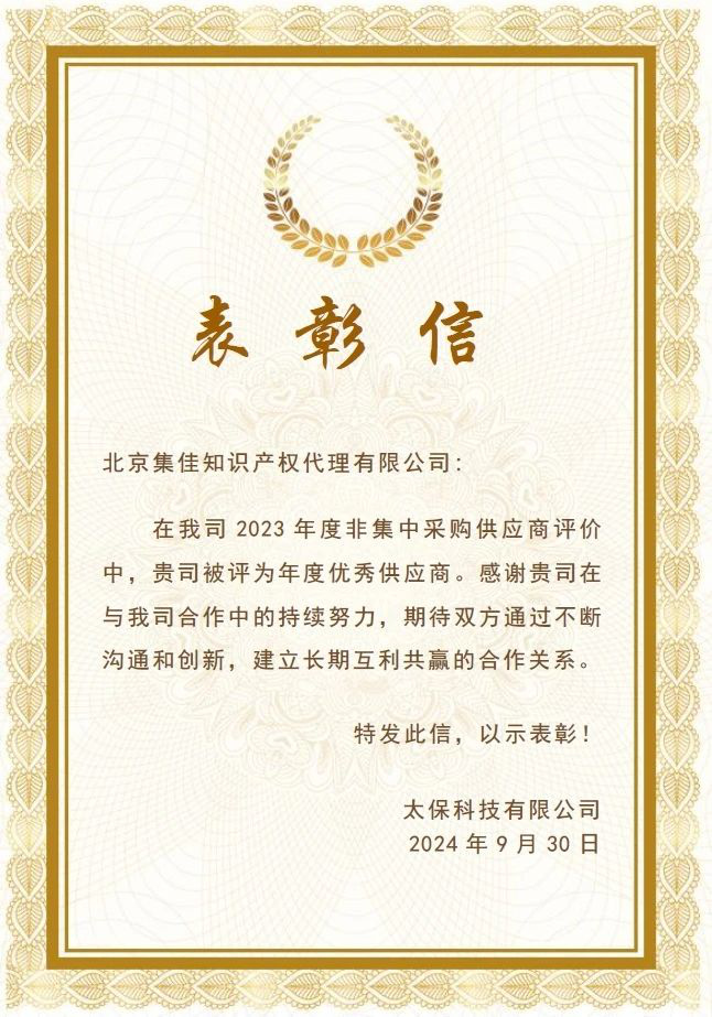 近日,集佳喜獲客戶太??萍加邢薰镜谋碚眯?,授予集佳“年度優(yōu)秀供應(yīng)商”榮譽(yù)稱號(hào),感謝集佳在與太??萍己献髦械某掷m(xù)努力,并期待雙方通過(guò)不斷溝通和創(chuàng)新,建立長(zhǎng)期互利共贏的合作關(guān)系。