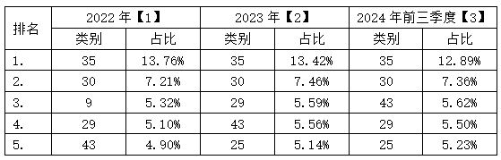 【3】基于國家知識產(chǎn)權(quán)局商標(biāo)局《2024年三季度各省、自治區(qū)、直轄市商標(biāo)注冊申請量、注冊量按類別統(tǒng)計表》