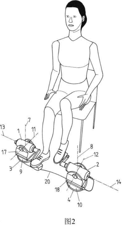 再者,對比文件3中完全沒有公開左右兩個曲柄軸42能夠單獨地通過中間元件來調(diào)節(jié)。對比文件3沒有公開各個曲柄軸對于待訓練的患者的相應的生理需求的單獨的可調(diào)節(jié)性。相反,對比文件3公開了用于患者的左腳和右腳的左右兩個曲柄軸的共同的調(diào)節(jié)方案。因此,對比文件3中沒有公開修改后的權利要求1中的“第一運動元件(1)設置在第一基礎元件(3)上,并且第二運動元件(2)設置在第二基礎元件(4)上,其中所述第一基礎元件(3)和所述第二基礎元件(4)在機械上完全彼此分開”。