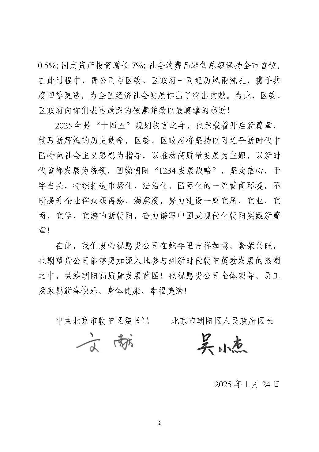 新春佳節(jié)來臨之際,集佳收到北京市朝陽區(qū)委、區(qū)政府發(fā)來的感謝信。信中,區(qū)委、區(qū)政府肯定和感謝了集佳過去一年為朝陽區(qū)經(jīng)濟(jì)社會發(fā)展作出的貢獻(xiàn),并對集佳全體領(lǐng)導(dǎo)、員工及家屬致以誠摯的問候和新春的祝福!