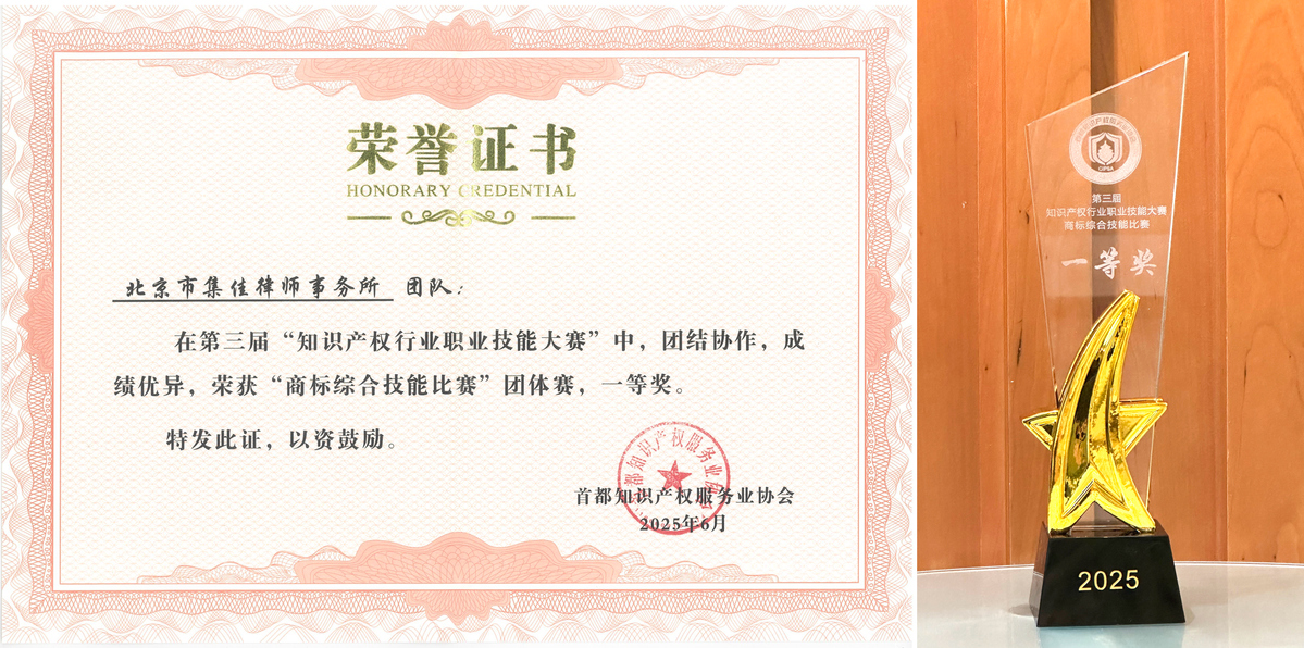 近日,由北京市知識(shí)產(chǎn)權(quán)局、海淀區(qū)市場(chǎng)監(jiān)督管理局指導(dǎo),首都知識(shí)產(chǎn)權(quán)服務(wù)業(yè)協(xié)會(huì)主辦的第三屆“知識(shí)產(chǎn)權(quán)行業(yè)職業(yè)技能大賽”圓滿落幕。集佳代表隊(duì)在比賽中展現(xiàn)了深厚的專業(yè)素養(yǎng),斬獲多項(xiàng)殊榮:由王斯沄、郝博文、王嬌嬌組成的商標(biāo)團(tuán)隊(duì)在商標(biāo)綜合技能比賽中力戰(zhàn)群雄,榮獲一等獎(jiǎng);青年代理人徐欣在行業(yè)英語演講比賽中表現(xiàn)優(yōu)異,榮獲二等獎(jiǎng)!